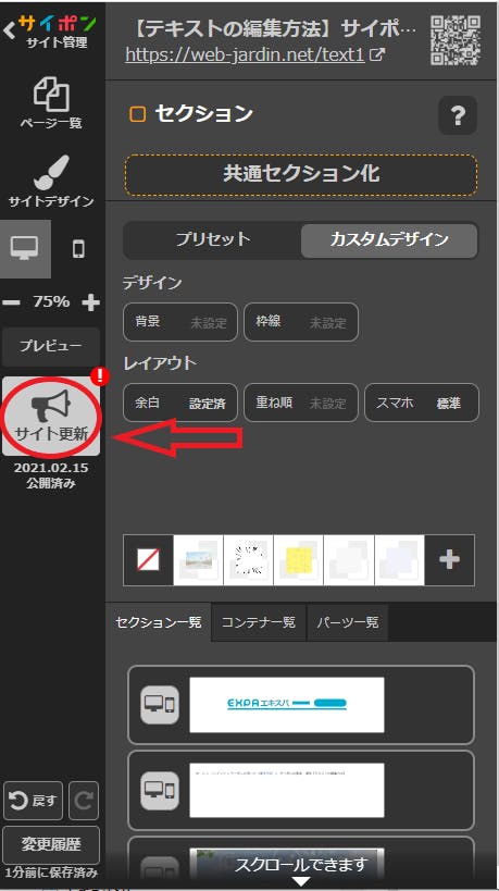 サイト更新ボタンをクリックしないと変更の反映がされないため、ご注意ください。